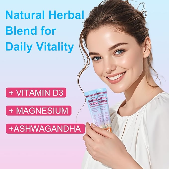 Es un suplemento natural elaborado a base de extracto de té mate, enriquecido con vitamina D3, magnesio, ashwagandha, prebióticos y probióticos.